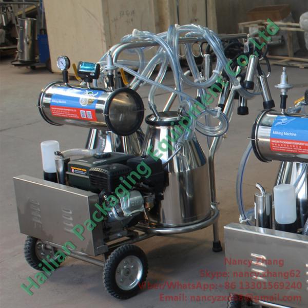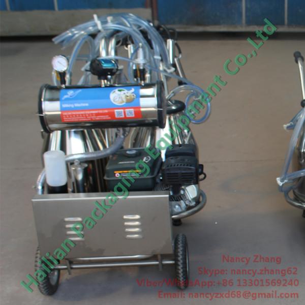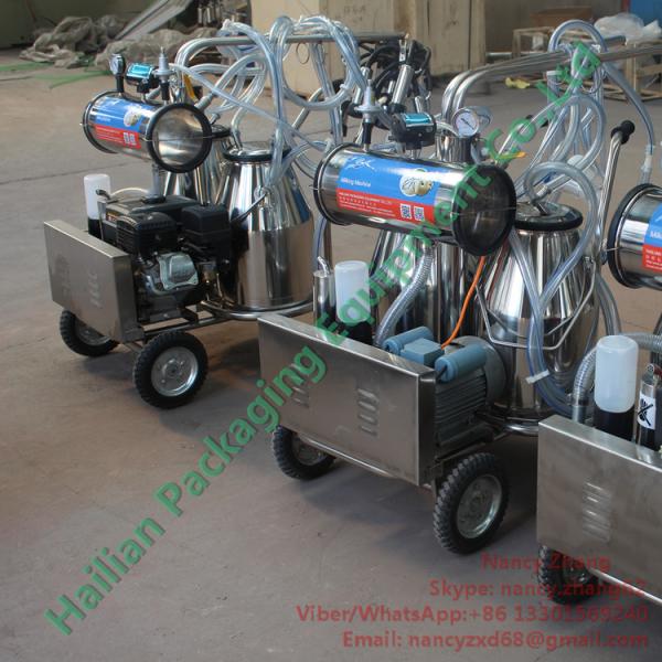 HL-JN08, the dairy farm mobile milking machine, different from the electric motor milking machine, is driven by the gasoline / petrol engine. This kind of dairy farm mobile milking machine is popularly use in some power shortage areas. The dairy farm mobile milking machine could be matched with single milking bucket, or dual milking bucket using, it depends on the users choosing and the animal quantity.